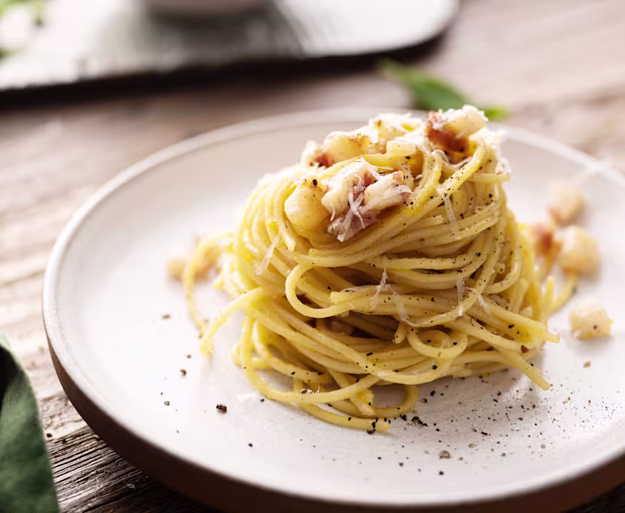En la auténtica receta romana no se utiliza nata, cebolla ni ajo. La magia de la Carbonara reside en la combinación exacta del huevo, el queso y el calor de la pasta.
